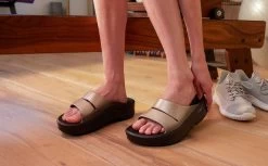 Luxe: Colors and shine bring some extra fun and expression to OOFOS’ classically sleek footbed.